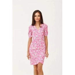 Sukienka mini z kopertowym dekoltem i krótkimi rękawami jest wykonana z wysokiej jakości materiału, który jest wygodny w noszeniu. Krótka sukienka charakteryzuje się krótkimi falbankowymi rękawami i marszczeniem wzdłuż tułowia. Sukienka ma również kopertowy dekolt i zachodzący na siebie dół. Mają też piękne wzory, które spodobają się każdemu. Sukienki do kolan mają zderzaki na ramionach, które nadają im charakteru. Model ten posiada również marszczenia wzdłuż tułowia, które optycznie wyszczuplają sylwetkę. Obcisłe sukienki są idealne dla kobiet, które lubią przyciągać uwagę. Połącz je z pasującymi akcesoriami, takimi jak biżuteria, torebka i buty, aby stworzyć piękny wieczorowy look. Produkt wykonany i uszyty w Polsce.