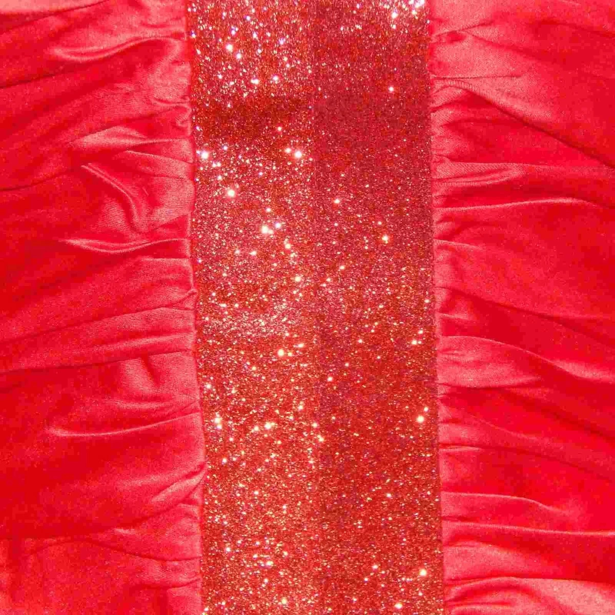 imprezowa i wieczorowa sukienka zdobiona wokół dekoltu i pionowo z przodu ozdobnymi paskami z brokatem. Przednia część sukienki ozdobiona jest marszczeniami. Rękawy są również marszczone. Sukienka jest tylko lekko elastyczna, a zapięcie odbywa się za pomocą ukrytego tylnego zamka błyskawicznego. Sukienka jest wyposażona w halkę i ma usztywniane miseczki.