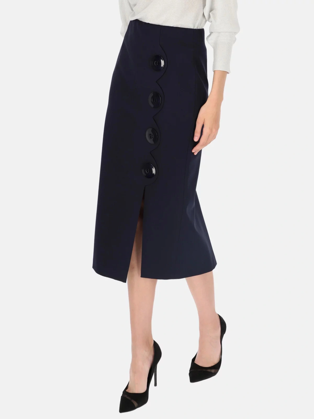 Spódnica Potis & Verso Zaira.70% wiskoza, 25% poliester, 5% spandexInstrukcje dotyczące pielęgnacjiKategoriaFC: Odzież damska | SpódniceKolekcja: jesień/zimaKolor: granatowyPłeć: damska