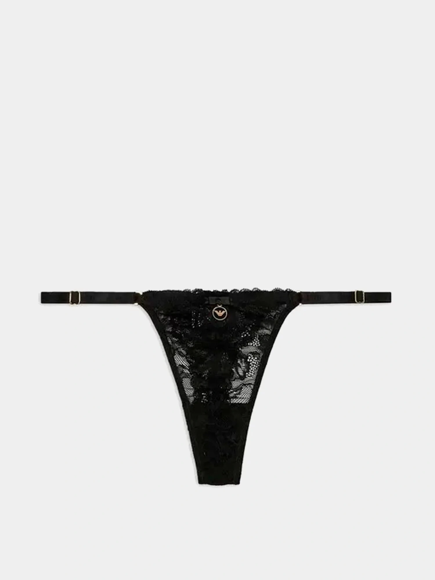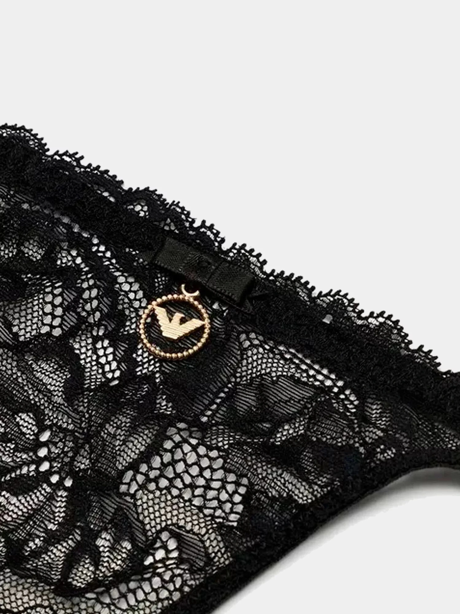 Dámská tanga od značky Armani - krajková - ozdobná mašlička s přívěskem značky EA Materiálové složenczytaj więcej