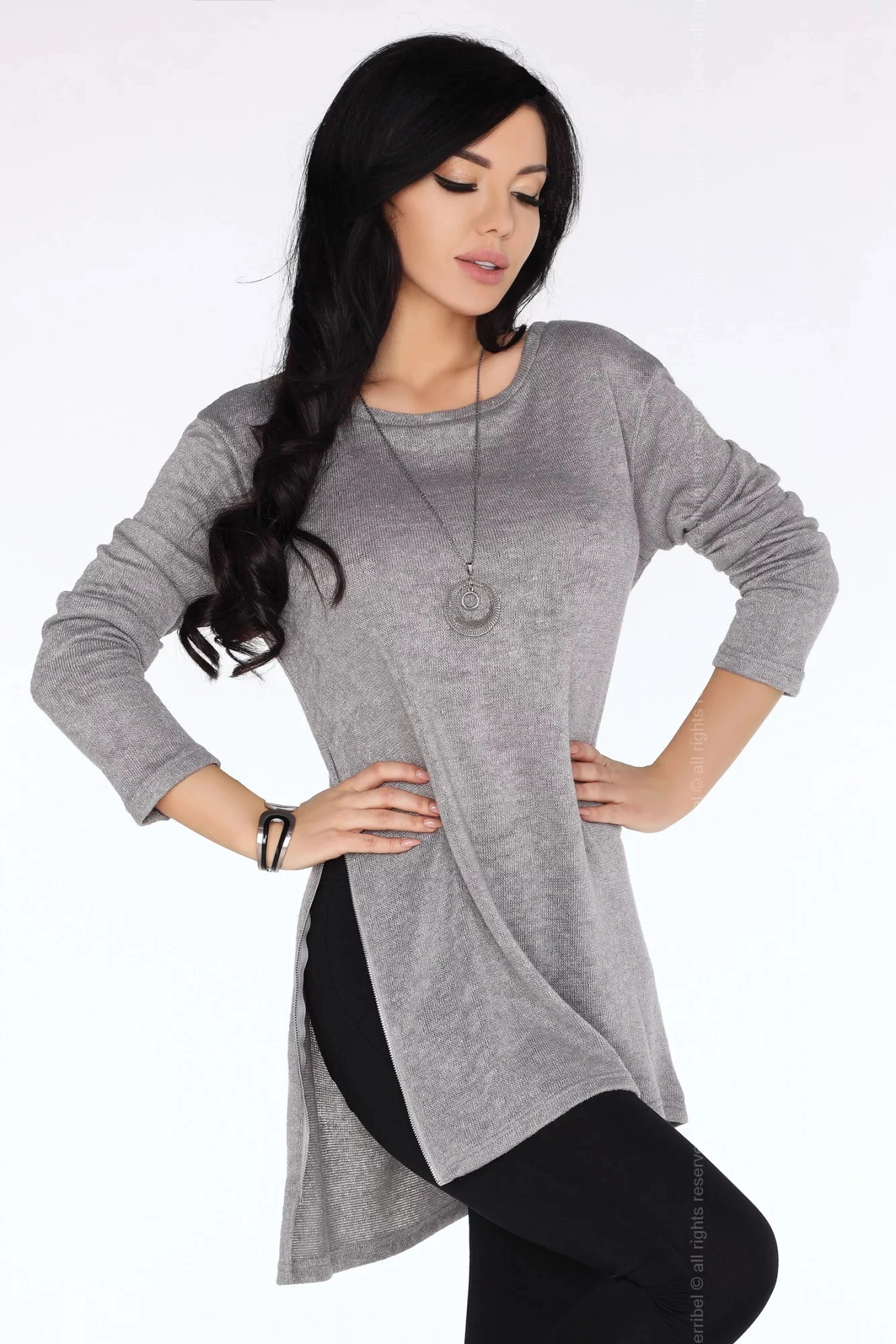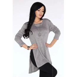 Pletená tunika s rozparky po bocích, délku rozparku lze nastavit díky všitým zipům.