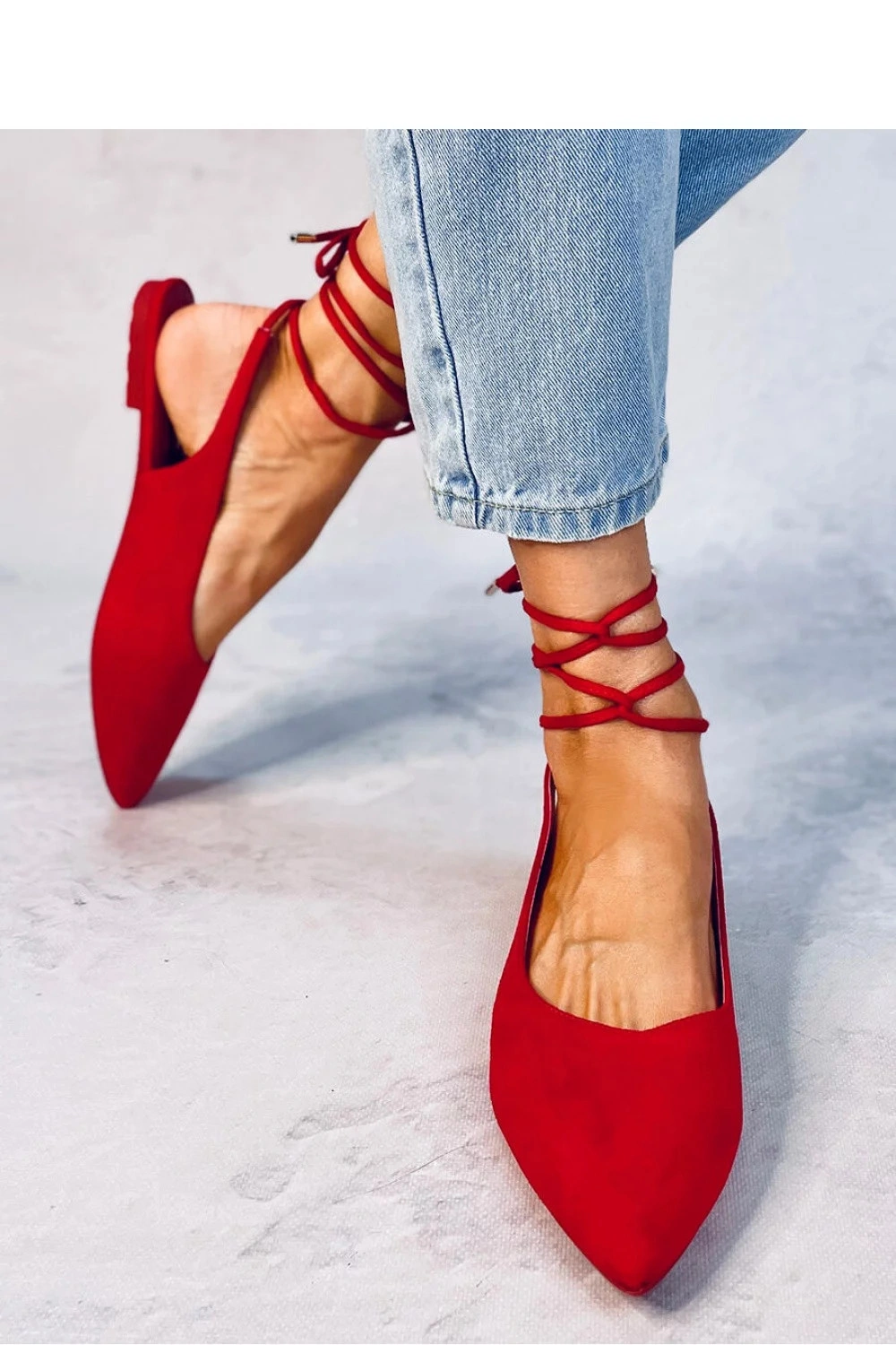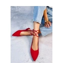 Dámské semišové baleríny s otevřeným podpatkem. Oči upoutá smyslné vázání, které zvýrazňuje kotník, a tvarovaný střih se zúženým nosem..... Pokud chcete vypadat výjimečně, musíte je mít Vnější materiál - ekologický semiš.
