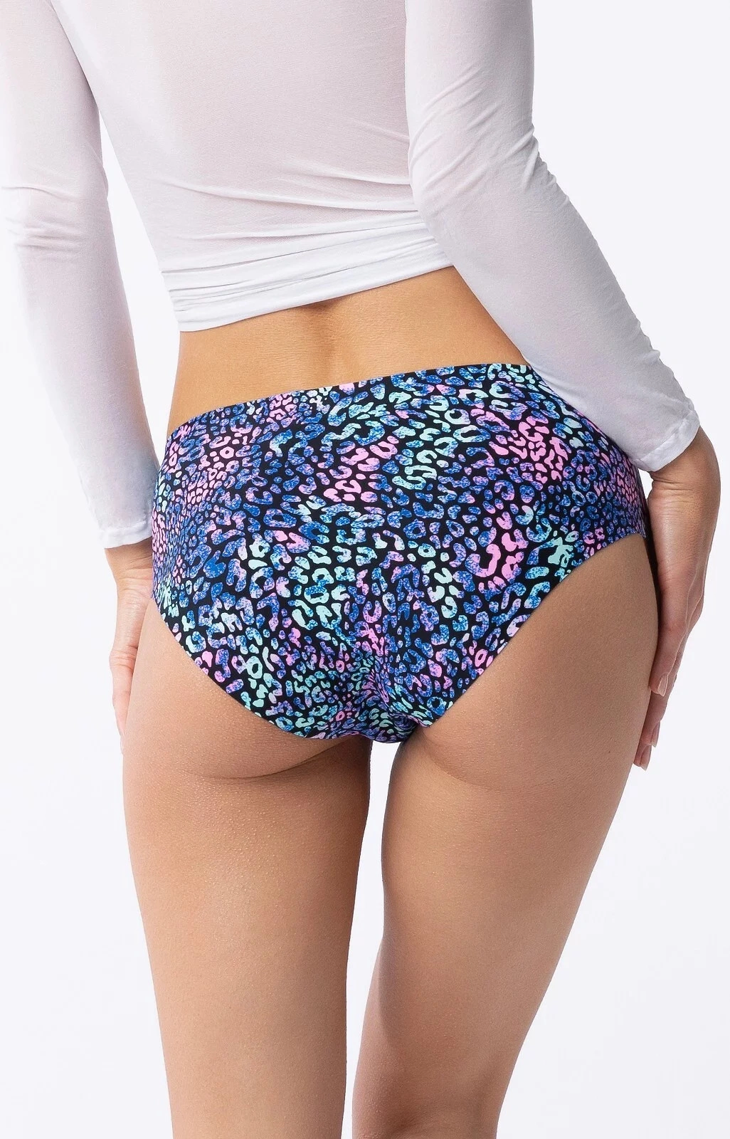 Dámské kalhotky klasického střihu - zdobené barevným potiskem - laserem řezaný bezešvý povrch - neviczytaj więcej