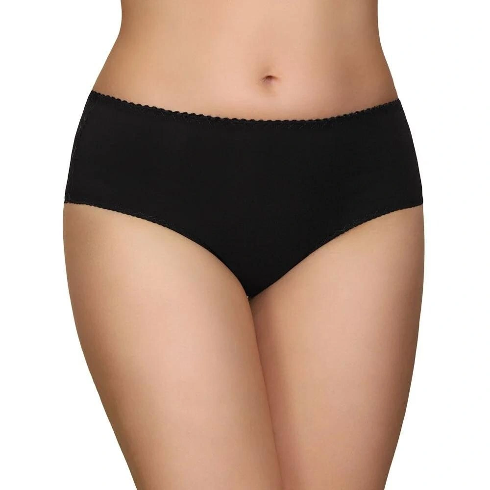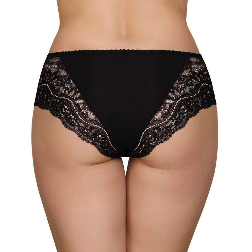 Eleganckie figi damskie Modo 114 o klasycznym kroju. Figi damskie wykonane są z bardzo wygodnej bawełny i ozdobione z tyłu piękną, wysokiej jakości elastyczną koronką. Figi damskie dostępne są w kolorze czarnym.