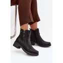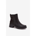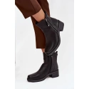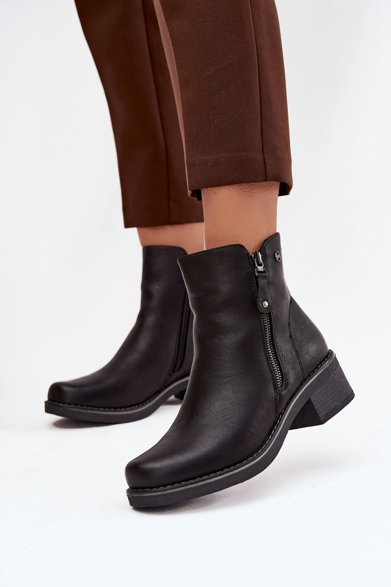 Dámské boty z eko kůže jsou praktickou a stylovou obuví na chladnější dny. Umístěny na stabilním podpatku typu kostka, zajišťují pohodlí a elegantní vzhled. Vybaveny dvojitým zipem, usnadňují oblékání a sundávání. Vnitřek vyhřátý obuvní přikrývkou zaručuje teplo a komfort během nošení. Při výběru velikosti se řiďte tabulkou velikostí. Při výběru velikosti se řiďte tabulkou velikostí.