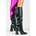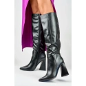 Te stylowe botki to idealny wybór na sezon jesienno-zimowy.Wykonane z wytrzymałej eko-skóry bez ocieplenia mają imponującą wysokość cholewki 39 cm.Wnętrze zdobi wkładka z eko-skóry dla dodatkowego komfortu.Słupek na obcasie o wysokości 10,5 cm zapewnia stabilność i elegancję.Zapięcie na suwak ułatwia zakładanie.Botki mają szpiczasty nosek co nadaje im klasycznego wyglądu.To botki,które idealnie sprawdzą się w chłodniejsze dni i dodadzą elegancji każdej jesiennej i zimowej stylizacji.