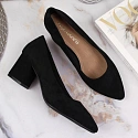 Damskie zamszowe czółenka na obcasie. Mają najmodniejszy krój z kwadratowym noskiem... Smukły obcas
