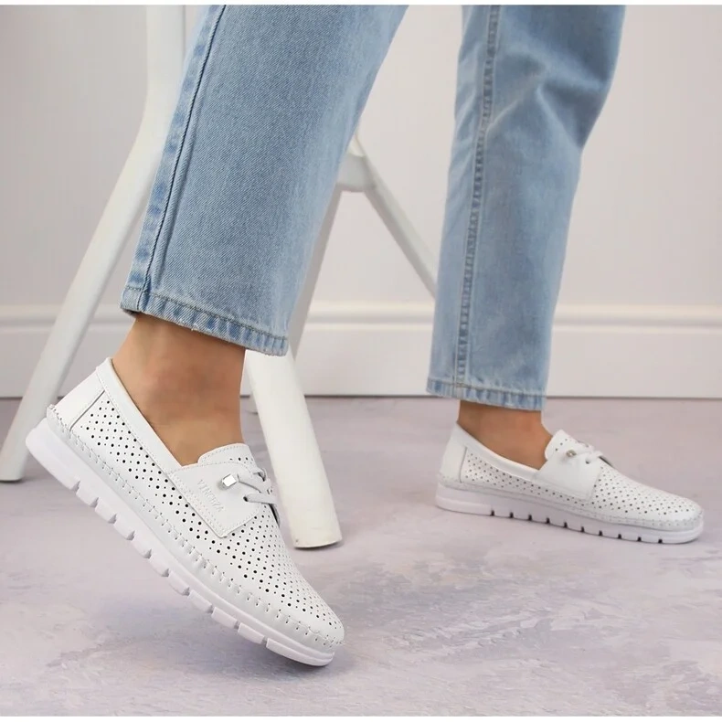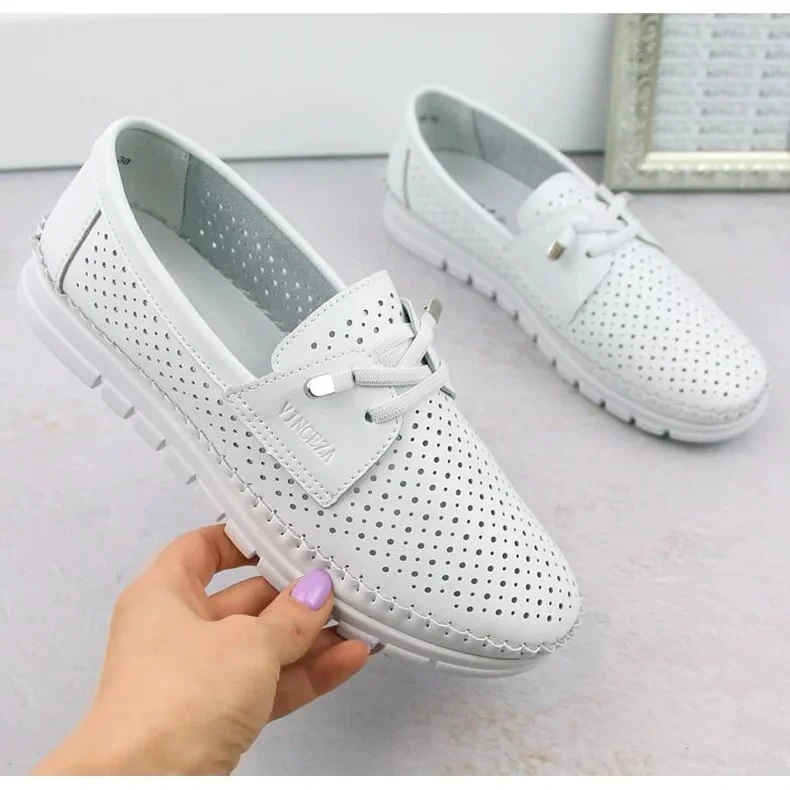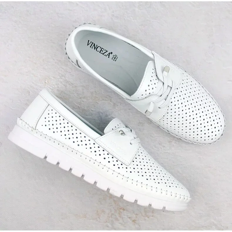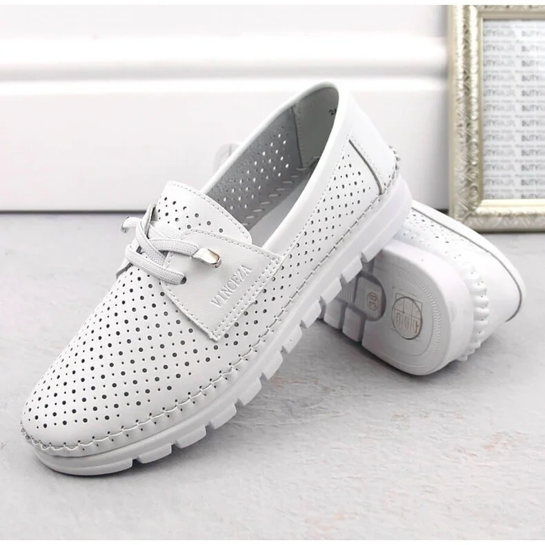 Dámské prolamované kožené slip-on boty, bílé Vinceza 7872, jsou synonymem elegance spojené s pohodlím a módním designem. Značka Vinceza, která se prezentuje jako špičkový produkt, opět dokazuje, že dokáže splnit potřeby i těch nejnáročnějších žen.