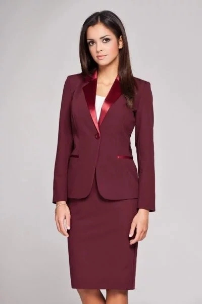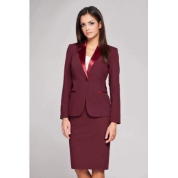 Damski elegancki żakiet M154 FIGL ozdobiony błyszczącym kołnierzem, klapami i kieszeniami. Żakiet ma długie rękawy i zapinany jest na jeden guzik. Żakiet wykonany jest z wygodnego materiału, który nie gniecie się.