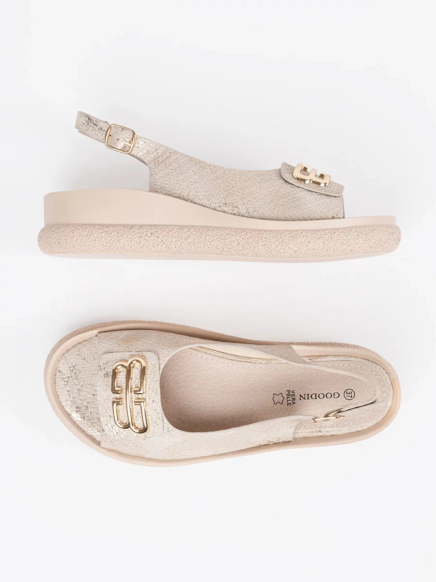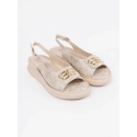 Damskie sandały na koturnie FL1711 - GOODIN jasna kawa 37