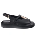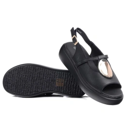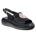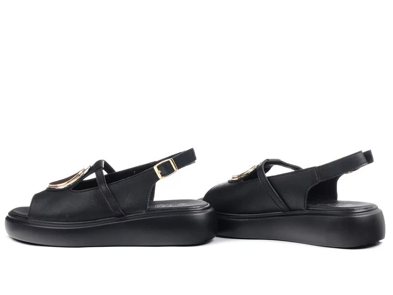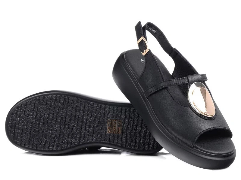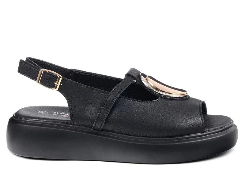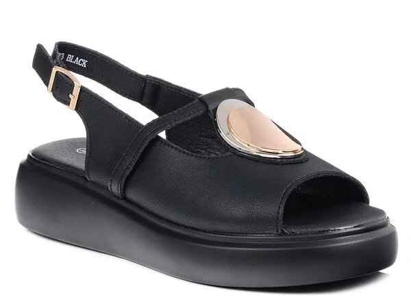 Damskie sandały od marki S.Barski. Wykonane ze skóry naturalnej, osadzone na platformie i delikatnym klinie. Z przodu buta znajduje się ozdobny detal, który nadaje im wyjątkowego charakteru. Zapinane są na klamrę z regulowanym paskiem, który zapewnia idealne dopasowanie do stopy. Sandały te będą świetnym wyborem na letnie wyjścia, łącząc elegancję z wygodą, idealne do sukienek, spódnic czy spodni.