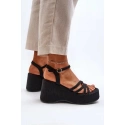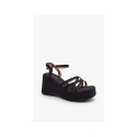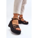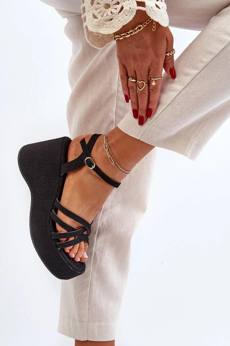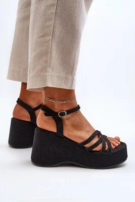 Mają wysoki klin i platformę obszytą materiałem z juty. Mają otwarty kwadratowy nosek. Sandały są przymocowane do długiego, regulowanego paska ze sprzączką. Niezwykle miękka ekologiczna wkładka jest bardzo wygodna podczas całodziennego użytkowania. Te buty będą świetnym dodatkiem do zwiewnej sukienki lub spódnicy.
