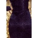 Sukienka damska 170-7 NUMOCO - granatowa - wykonana z wysokiej jakości materiału z warstwą koronki - dekolt V - długi rękaw - doskonale podkreśla sylwetkęSkład materiału: 95% poliester + 5% elastan