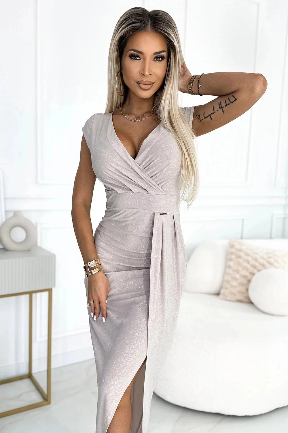 - długa brokatowa sukienka