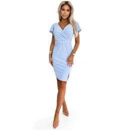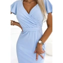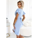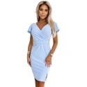 Sukienka damska 479-6 NINA NUMOCO - niebieski - dekolt w szpic - krótkie rękawy, pasek - lekko elastyczny materiałSkład materiału: 95% poliester + 5% elastan
