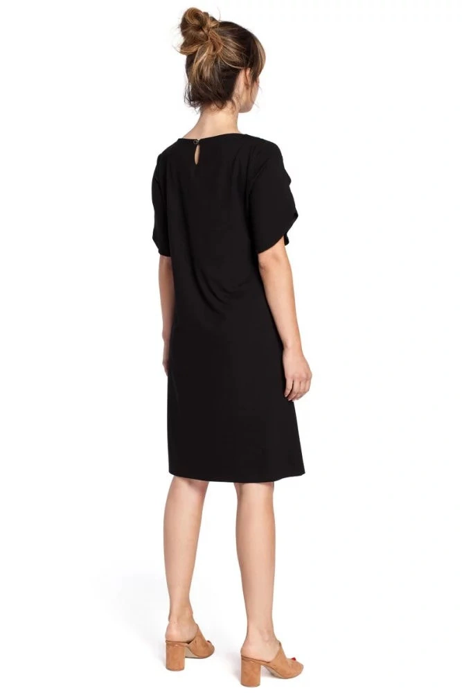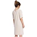 Wygodna jednokolorowa sukienka damska o luźnym kroju, z rękawami 3/4 i dekoltem w kształcie litery V