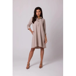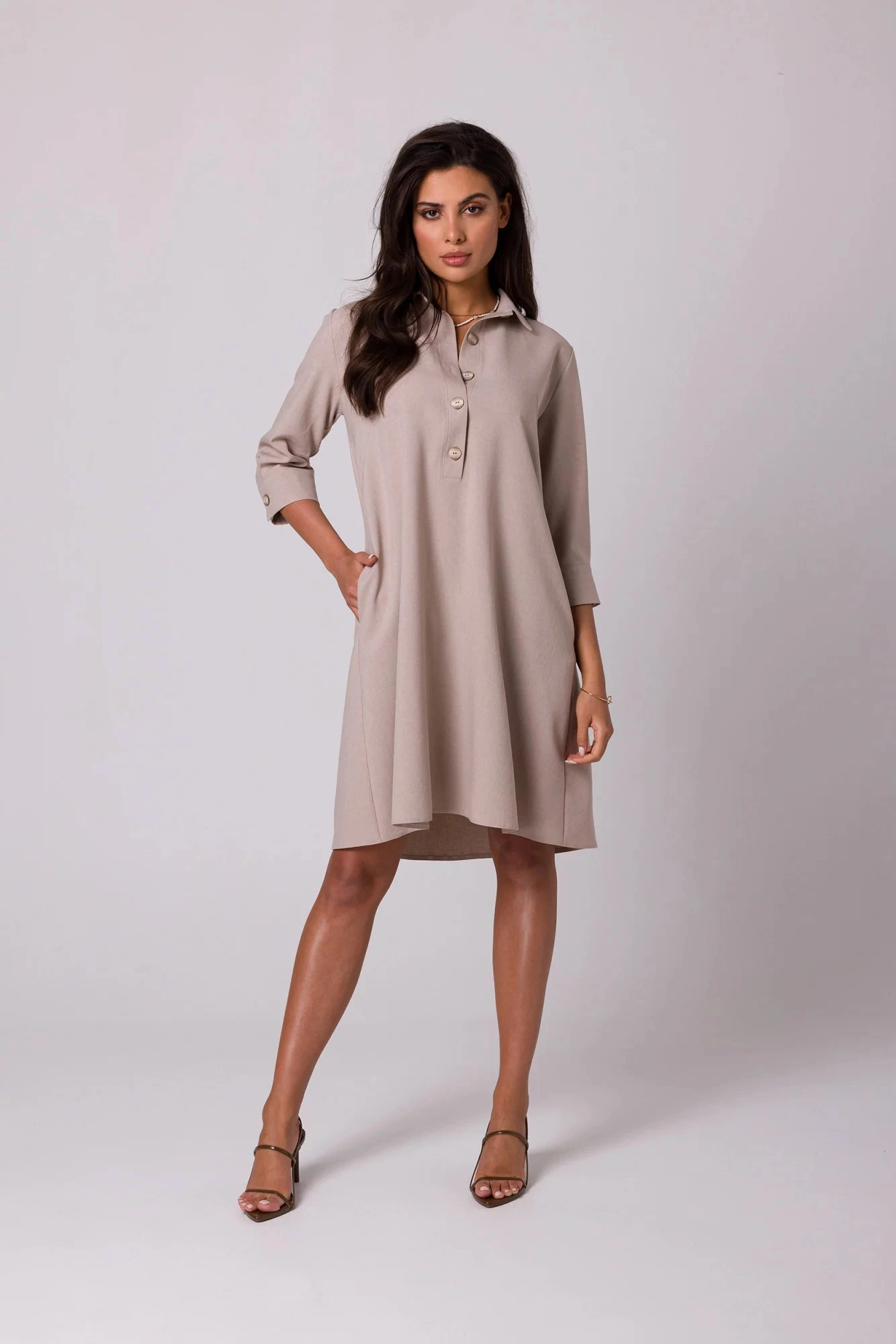 Pokochasz tę luźną sukienkę, gdy pogoda się ociepli. Ma klasyczny kołnierzyk z dekoltem zapinanym na guziki i mankietami zapinanymi na guziki.
