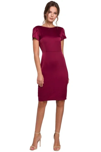 ZOFIA sukienka wizytowa ze sztucznym kołnierzem średniej długości bordowa Wymiary tej sukienki znaj