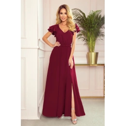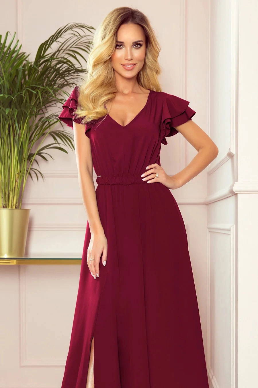 Dámské šaty 310-5 Numoco - dlouhé šaty - dekolt do tvaru "V" - široká ramínka s volánky - stahování v paseMateriálové složení: 95% polyester + 5% elastan