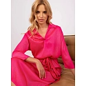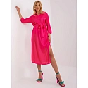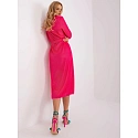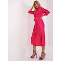 Tmavě růžové jednoduché koktejlové šaty s páskem .