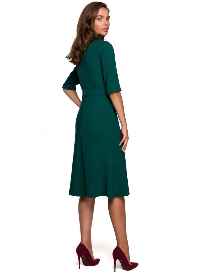 Spódnica ma ukośny pasek z klamrą w talii i zapięcie na suwak z klasycznym kołnierzykiem - to modna sukienka. SZCZEGÓŁY PRODUKTU: sukienka z tkanego materiału z kołnierzykiem zapięcie na suwak na środku długość do łokcia plisowane rękawy spódnica ukośny pasek z klamrą długość do kolan Nasza modelka ma 174 cm wzrostu i nosi rozmiar S.