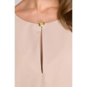 DETAILY PRODUKTU: tkaný materiál uvolněný střih šaty s délkou nad kolena tříčtvrteční rukávy dělený výstřih s ozdobným knoflíkem skrytý zip vzadu záhyb na zádech bez podšívky naše modelka je vysoká 175 cm a nosí velikost S navrženo a vyrobeno v Polsku