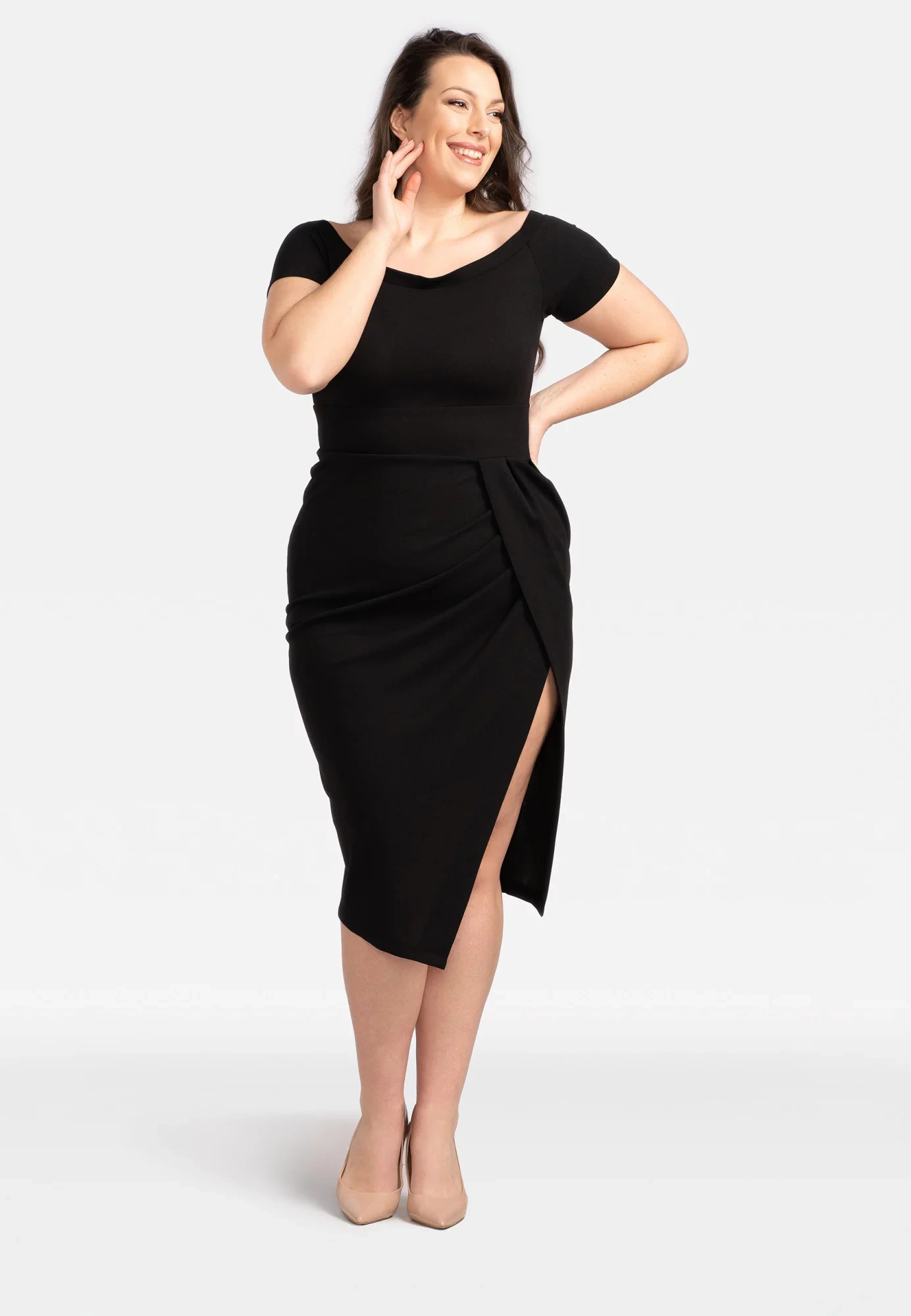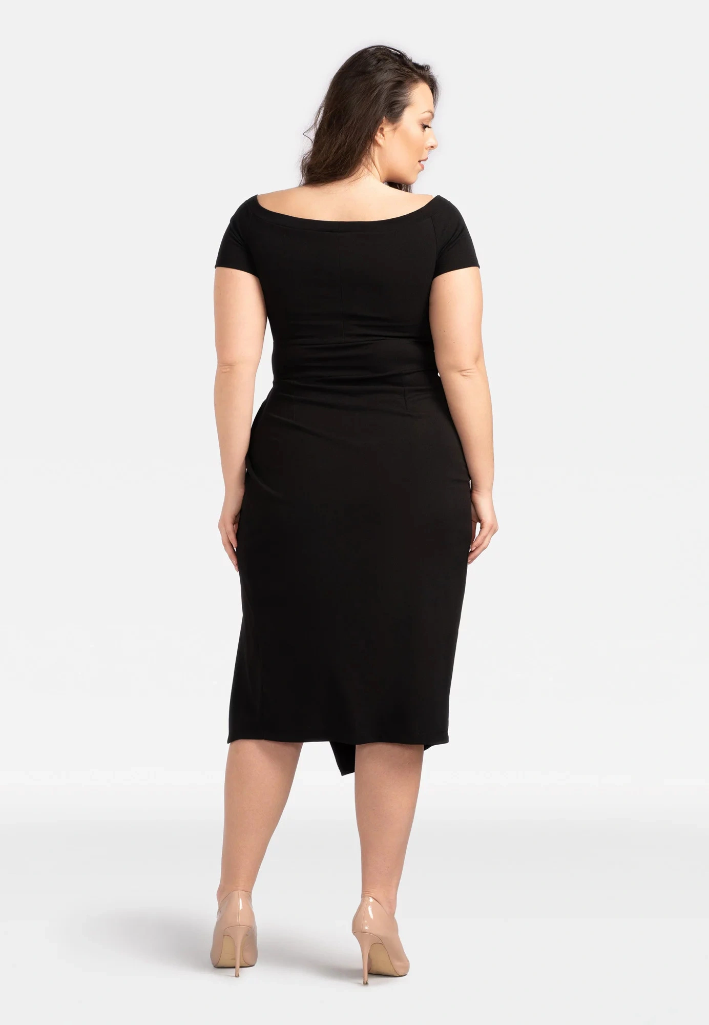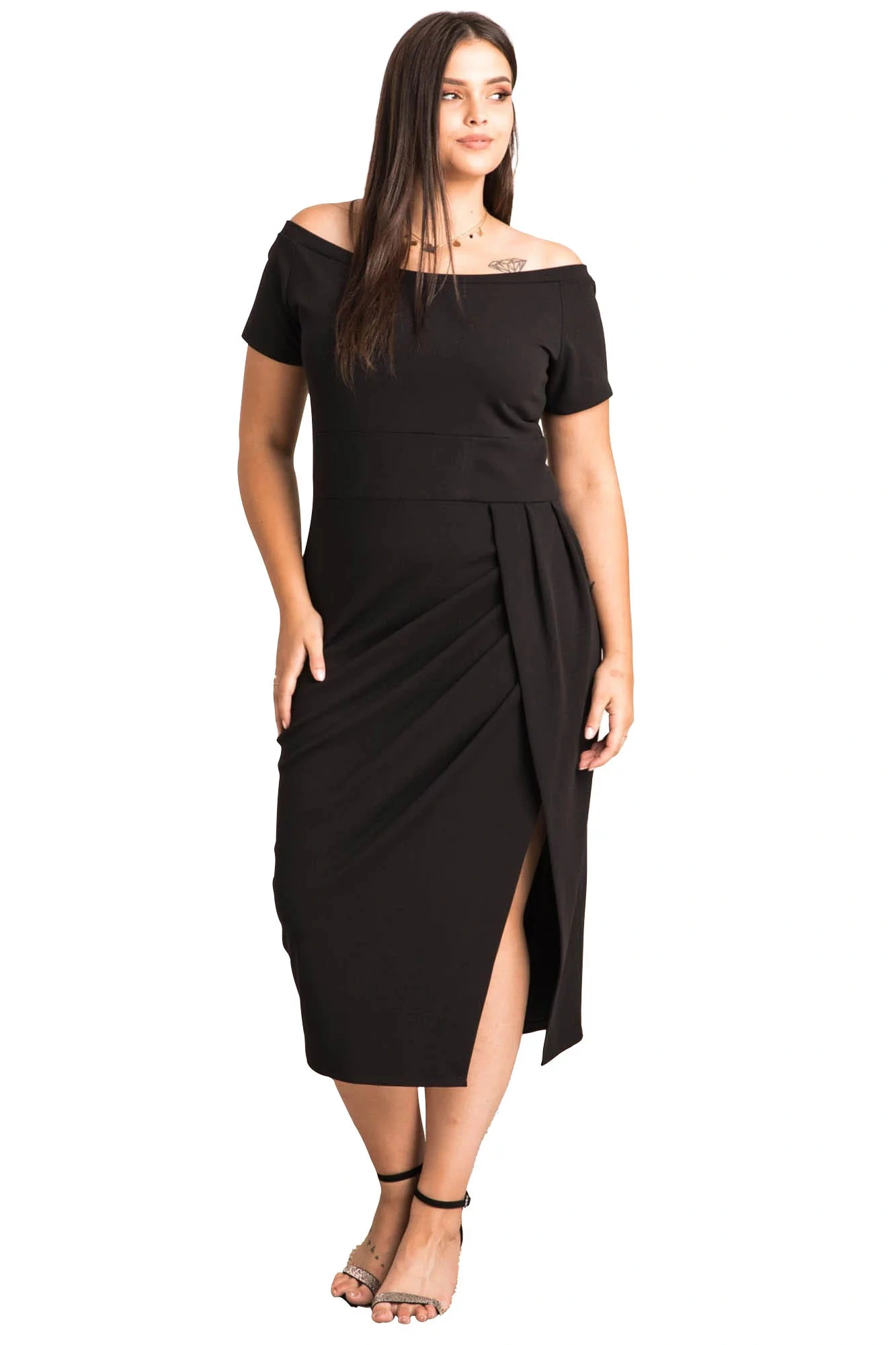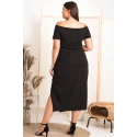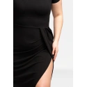 Damska aksamitna sukienka midi z marszczonymi rękawami M557 czarna - Moe