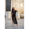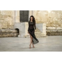 Éterické a svůdné šaty ideální do naší soupravy spodního prádla, na večerní procházky městem i romantické večeře. Celé jsou vyrobeny z kvalitního černého tylu, zdobeného lemovkami na rukávech a ve výstřihu. Model je elastický a krásně se přizpůsobí linii těla, spolu s jehlovými podpatky v soupravě vytvoří nádherný komplet pro velké i malé vycházky. Materiálové složení: Polyamid 95 %, Elastan 5 %