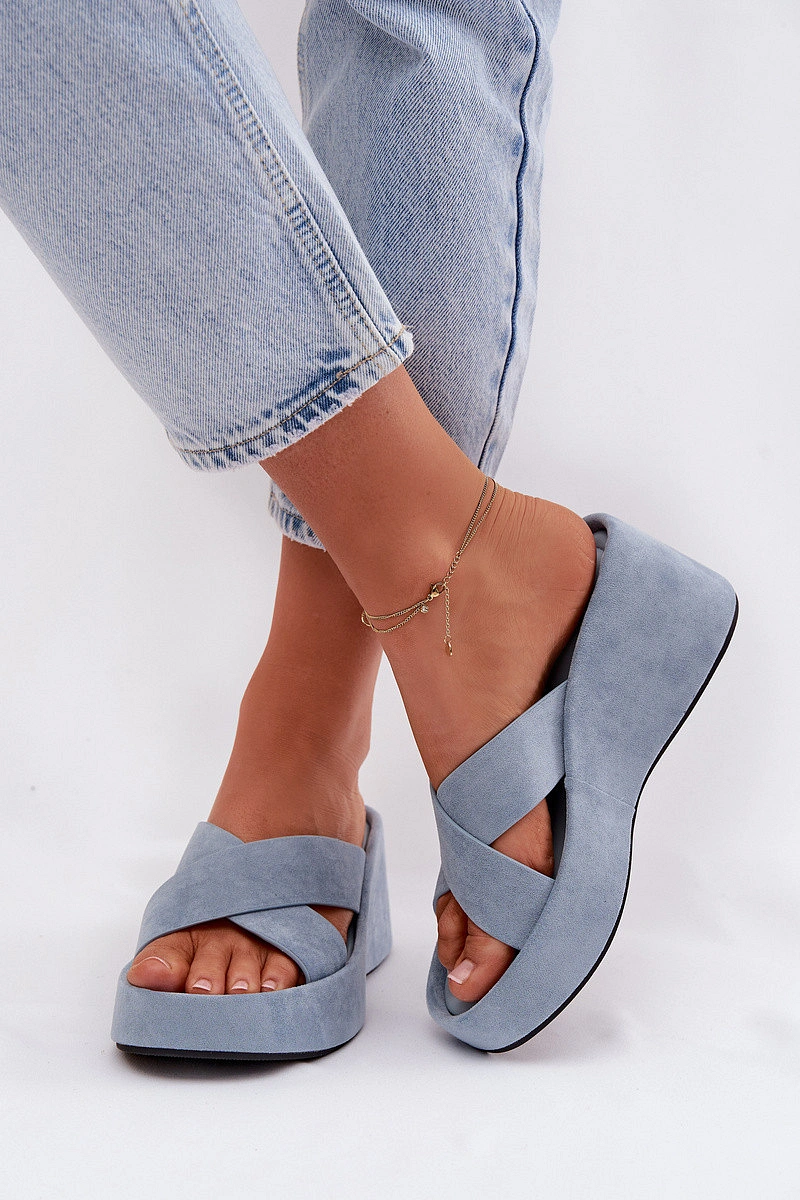 Opis Dámské semišové nazouváky G517 modré - Joalice Paris