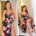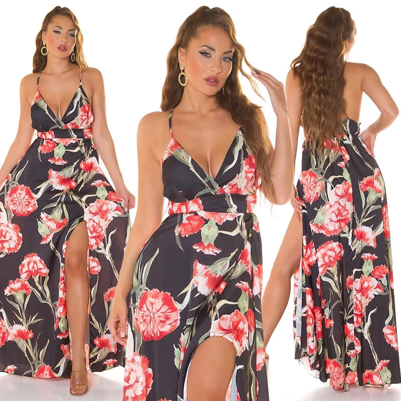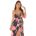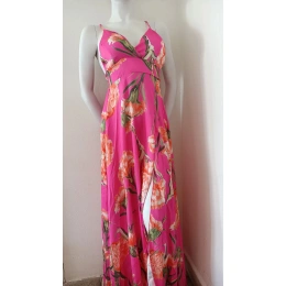 Dámské letní dlouhé šaty, s rozparkem. Na poprsí vyztužené, bez kostic. 100% polyester / s košíčky