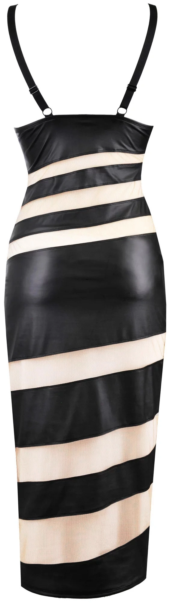 Dzięki uwodzicielskiemu połączeniu tkaniny wetlook i prześwitujących wstawek nie będziesz mogła oderwać od niej wzroku. Miękkie miseczki na drutach idealnie dopasowują się do biustu, unosząc go i zapewniając swobodę ruchów podczas tańca. Regulowane ramiączka zapewniają jeszcze lepsze dopasowanie. Sukienka jest dopasowana przez głowę.
