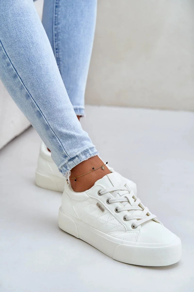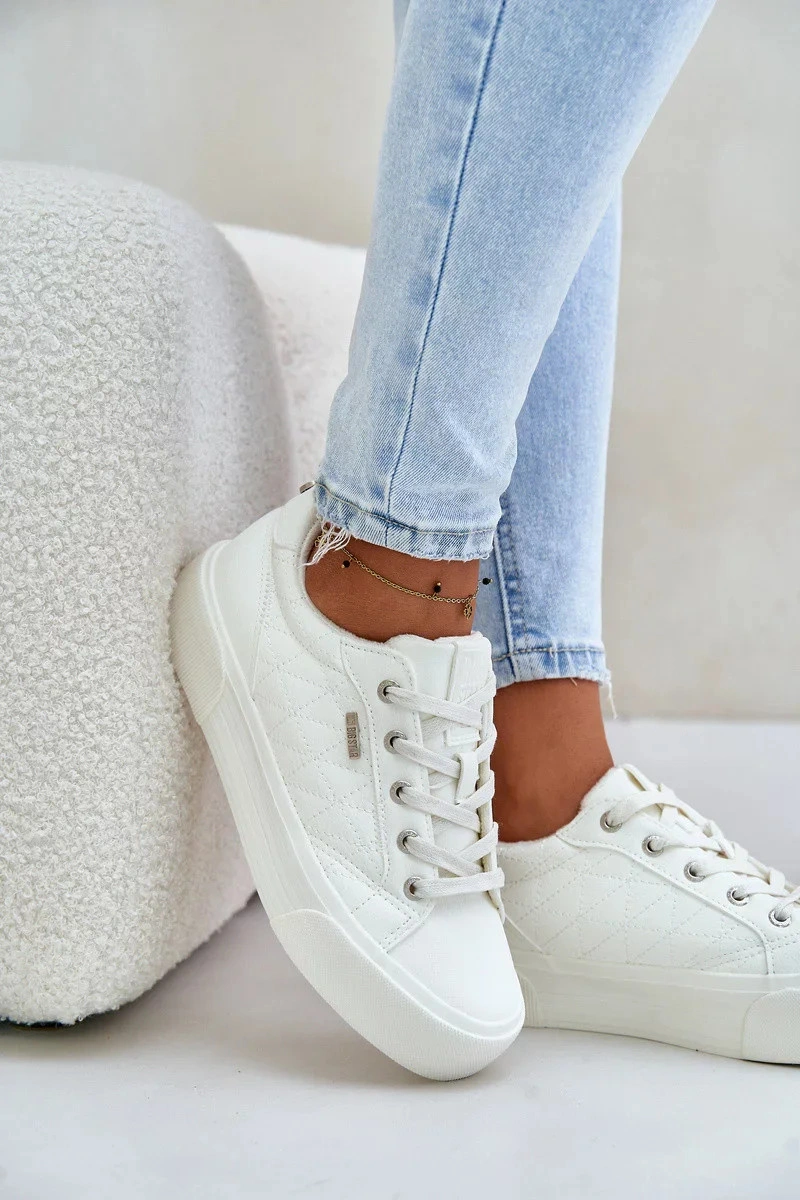 Sneakersy Big Star wykonane ze skóry ekologicznej to stylowe i wygodne buty na chłodniejsze dni. Zbudowane na platformie dodadzą charakteru każdej stylizacji, jednocześnie zapewniając komfort noszenia. Ocieplane podszewką buty świetnie sprawdzą się w chłodniejsze dni, zapewniając ciepło i wygodę. Cholewka ozdobiona przeszyciami. Zaokrąglony nosek. Przy wyborze rozmiaru prosimy kierować się tabelą rozmiarów.