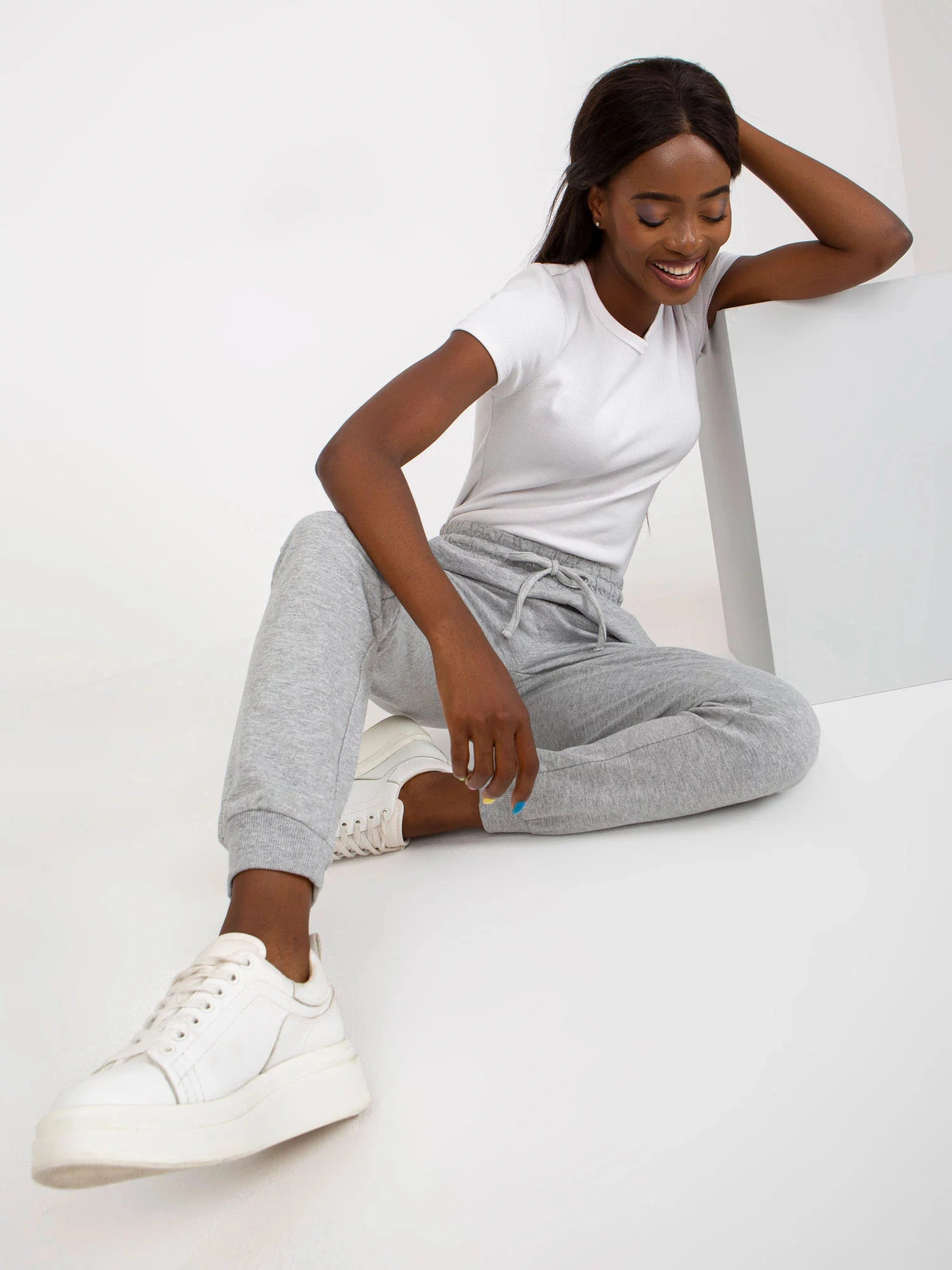 Modelka má na sobě velikost S. Rozměry modelky: výška 162 cm, poprsí 80 cm, pas 63 cm, boky 80 cm.