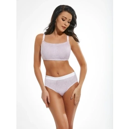 Biustonosz o kroju "top" nie ma wyprofilowanych miseczek ani fiszbin. Pośrodku modelu znajdują się sznurki, dzięki którym można regulować stanik i idealnie go dociągnąć. Model wykonany jest z wzorzystej mikrofibry i podszyty bawełną. Biustonosz posiada zapięcie Clik-Clac, które umożliwia odpinanie i zapinanie miseczek jedną ręką. Dlatego nie jest konieczne zdejmowanie biustonosza podczas karmienia piersią. Ramiączka są podszyte bawełną i można je regulować w dużych rozmiarach.