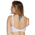 Biustonosz od Mitex. Model mleka. Produkt posiada regulowane paski bez możliwości odpięcia. Plastikowe zaczepy do paska. Biustonosz zapinany na haftki. Punkt mocowania: tył. Dwa rzędy pionowych haczyków. Trzy poziomy poziomych zaczepów. Produkt wykonany jest w 95% z bawełny i w 5% z elastanu. Produkt dla kobiet. Bielizna ma wyjmowane miseczki. Odzież ciążowa.
