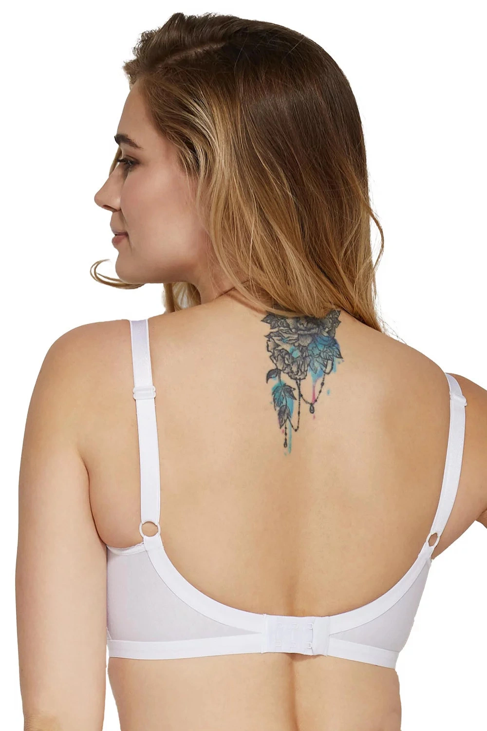 Biustonosz od Mitex. Model mleka. Produkt posiada regulowane paski bez możliwości odpięcia. Plastikowe zaczepy do paska. Biustonosz zapinany na haftki. Punkt mocowania: tył. Dwa rzędy pionowych haczyków. Trzy poziomy poziomych zaczepów. Produkt wykonany jest w 95% z bawełny i w 5% z elastanu. Produkt dla kobiet. Bielizna ma wyjmowane miseczki. Odzież ciążowa.