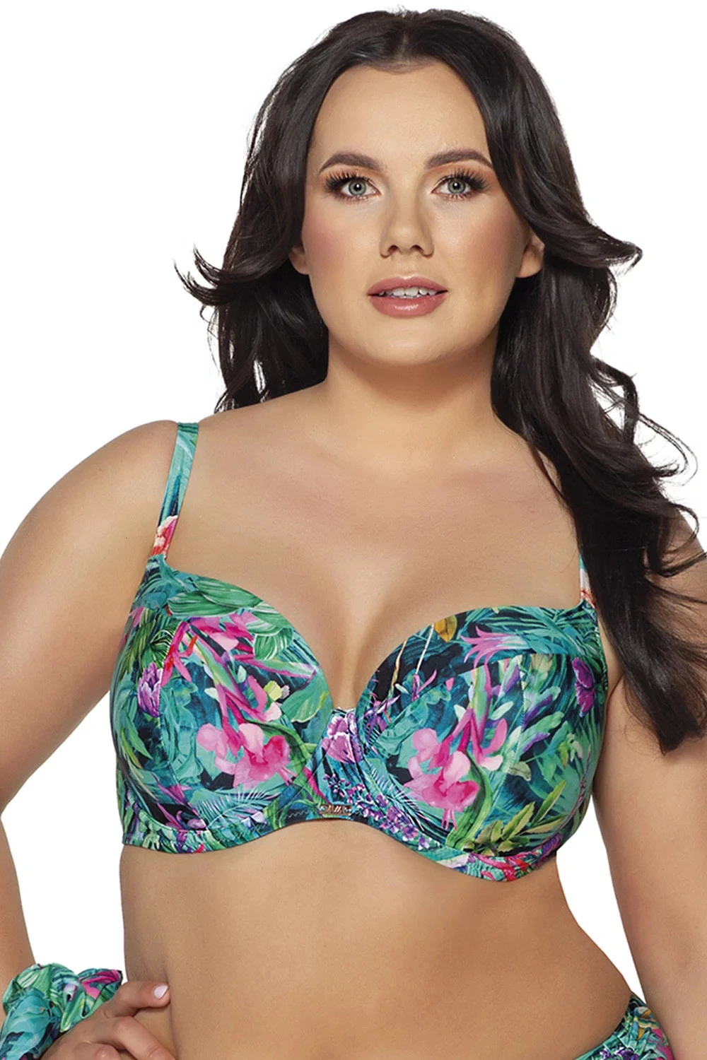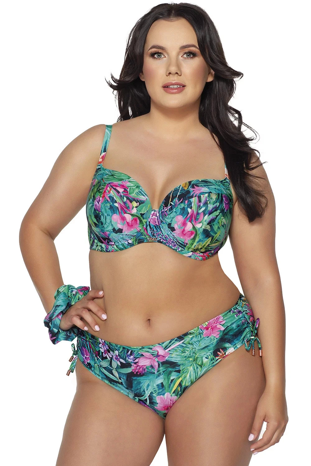 Strój kąpielowy Ava. Model SK-205. Posiada druty, które odpowiednio kształtują piersi. Produkt posiada regulowane paski bez możliwości odpięcia. Metalowe zaczepy do paska. Strój kąpielowy z zapięciem na klamrę. Punkt mocowania: tył.