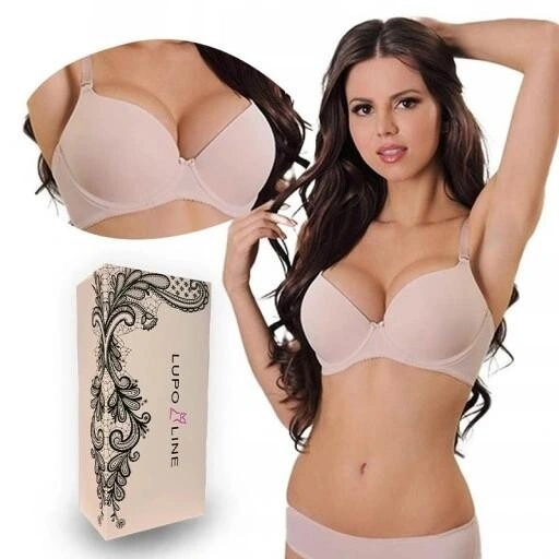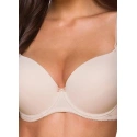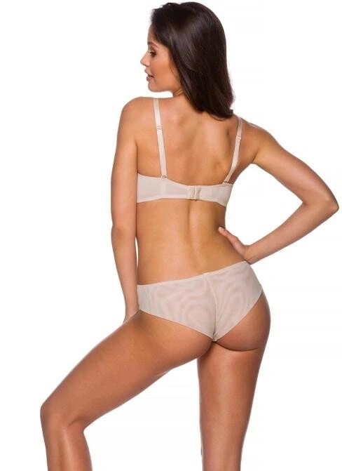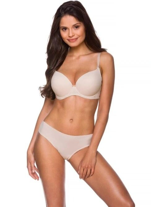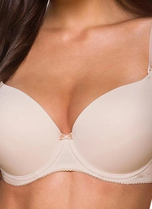 Elegancki beżowy biustonosz damski z profilowanymi miseczkami z żelowymi wkładkami, które pięknie unoszą i stabilizują biust.