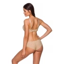 Miseczki w kolorze cielistym ozdobione są błyszczącą koronką. Boki modelu wykonane są z tiulu. Pasków nie można odpiąć.