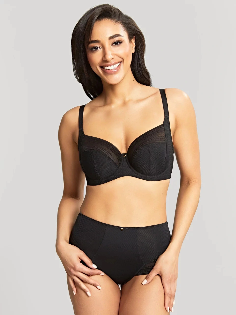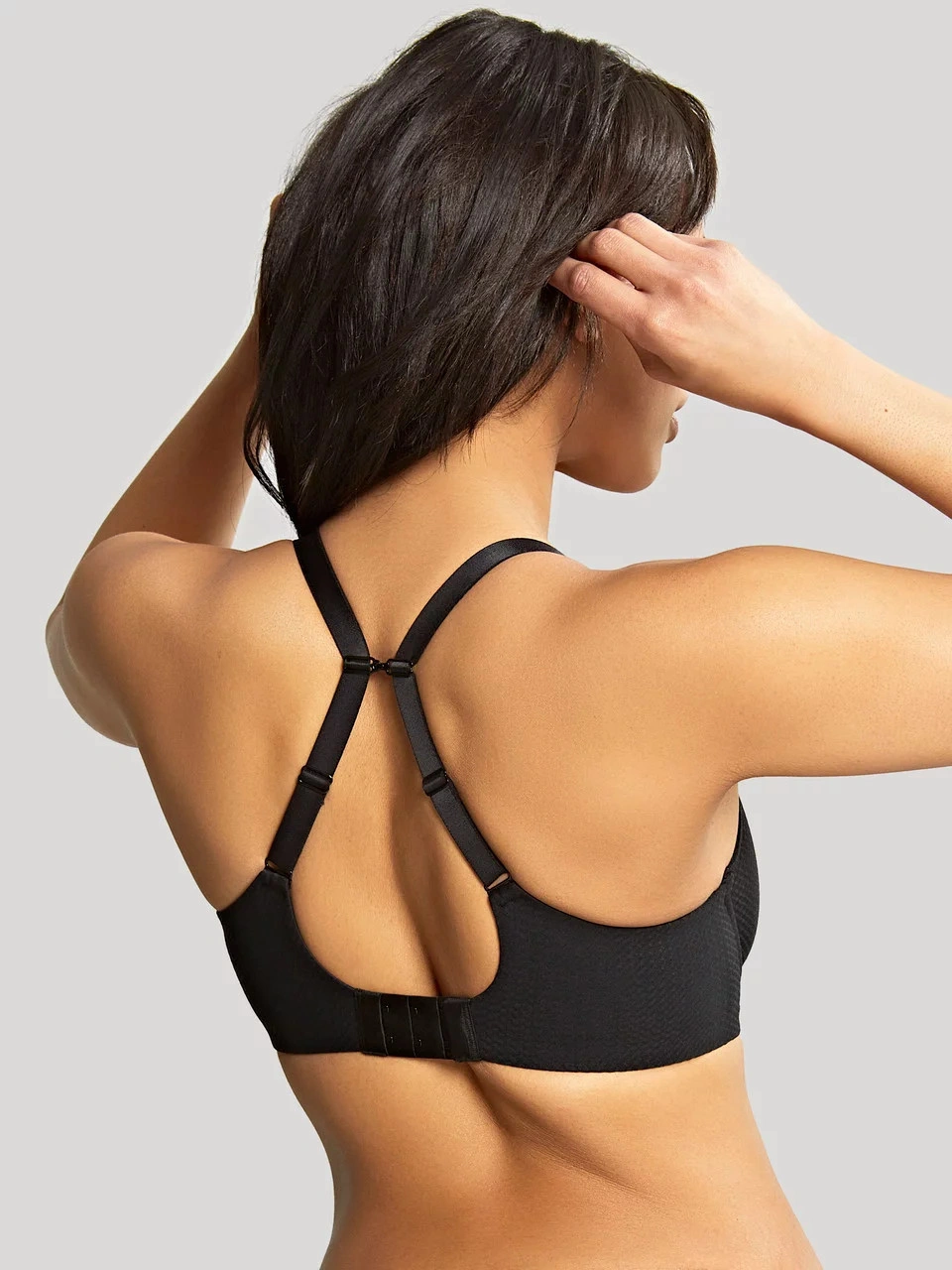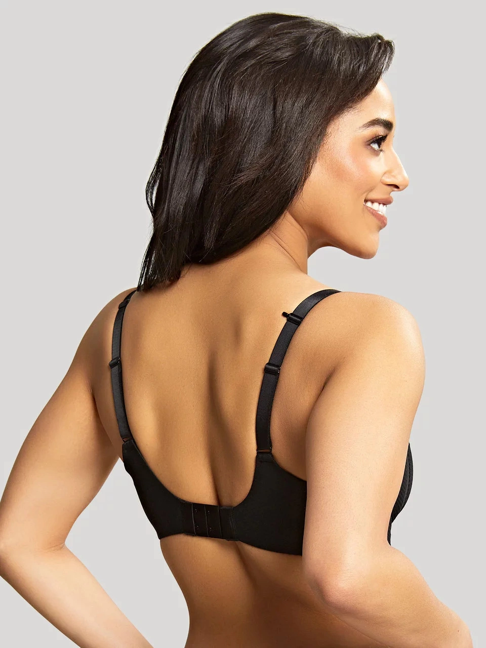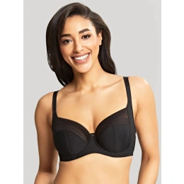 Luksusowy biustonosz bez podszewki, na fiszbinach, zapinany z tyłu na trzy haftki. Ramiączka przesuwane.