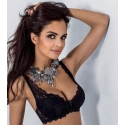 Wzmocniony koronkowy biustonosz z motywem kwiatowym. Wnętrze miseczek jest wyściełane bawełną. Boki są wzmocnione pionowymi fiszbinami. Paski są regulowane i nie można ich odpiąć. Model doskonale unosi biust.