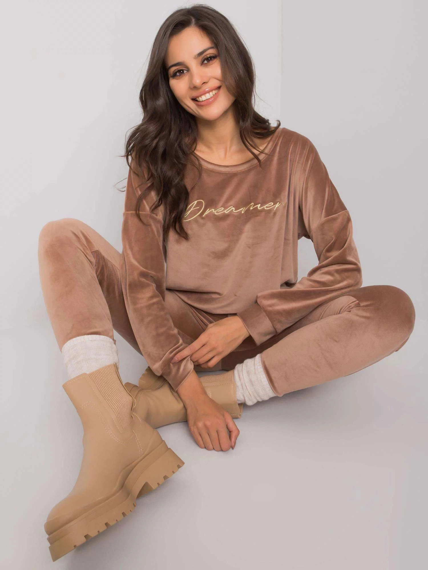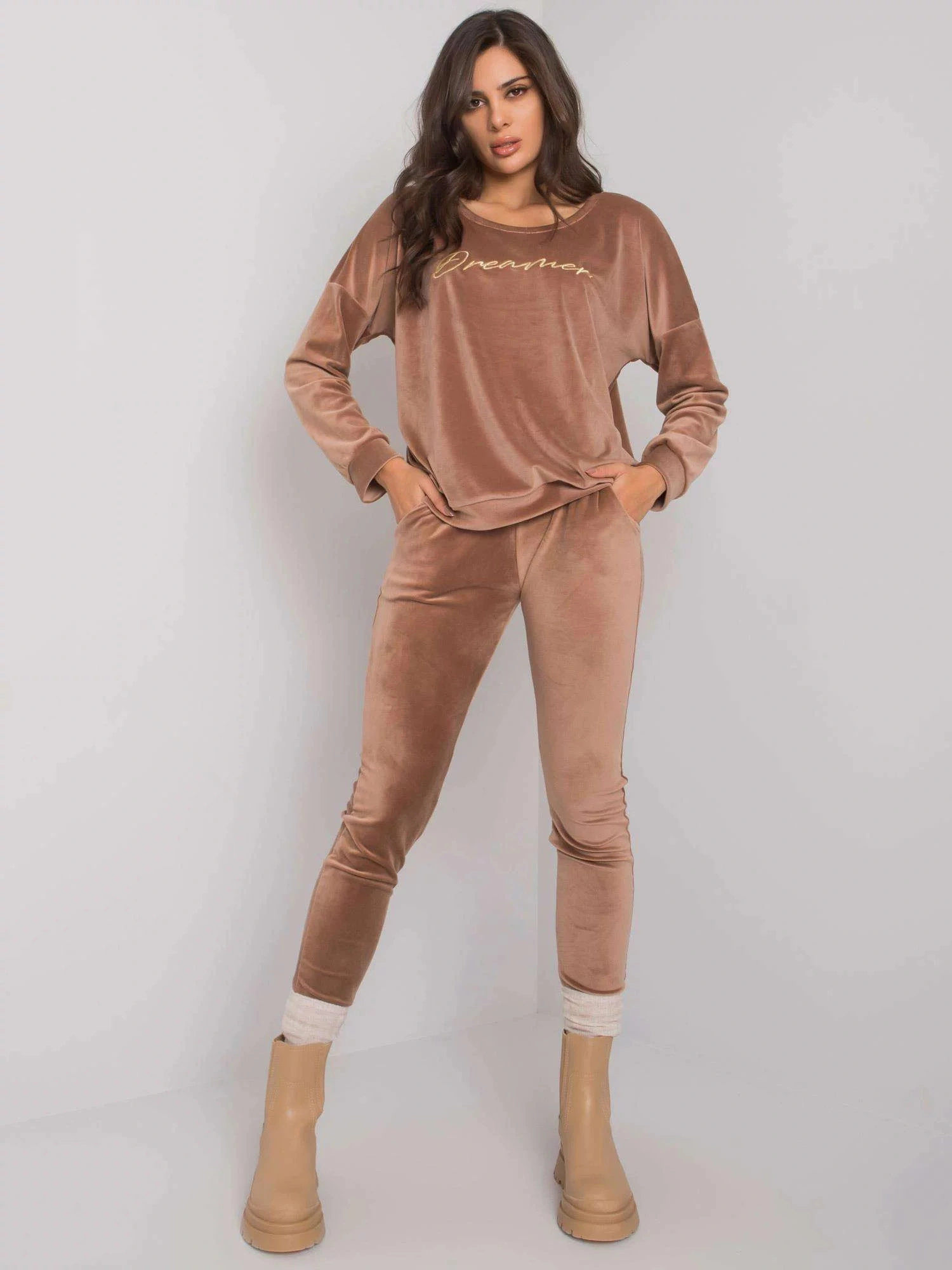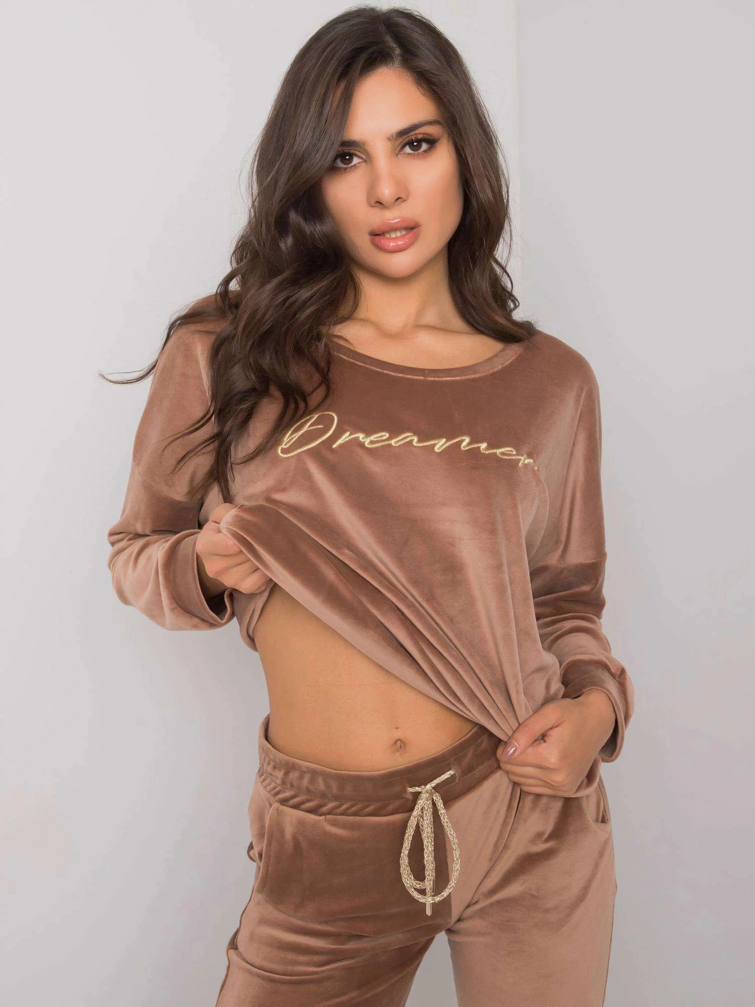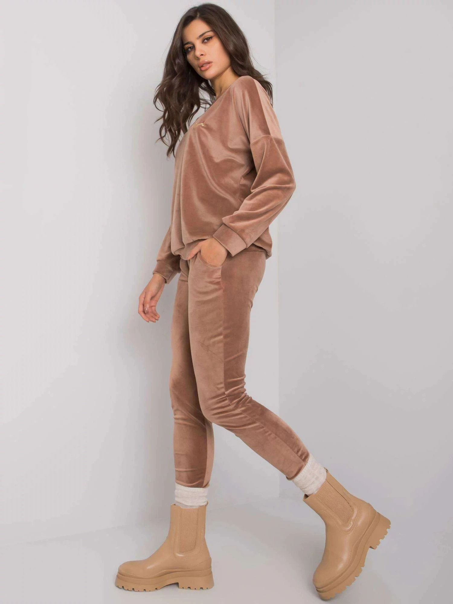 RUE PARIS Brązowy dwuczęściowy zestaw welurowy.