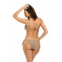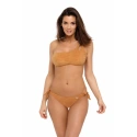 Coś zdecydowanie innego, oryginalnego i pomysłowego, a więc oferta skierowana do kobiet, które chcą być widoczne w tłumie i postawić na rozwiązanie nietradycyjne, inne niż wszyscy. Jeśli więc idziemy w tym kierunku, to z przyjemnością proponujemy Ci przepiękny kostium kąpielowy Sabrina M - 524, który swoją oryginalność zawdzięcza zarówno tkaninie imitującej zamsz, jak i krojowi. Majtki wiązane po bokach, stanik na jednym ramieniu i dzięki tej asymetrii zyskuje na efektywności. Polecamy ten strój kąpielowy w każdym przypadku, ponieważ spodoba się każdej kobiecie.