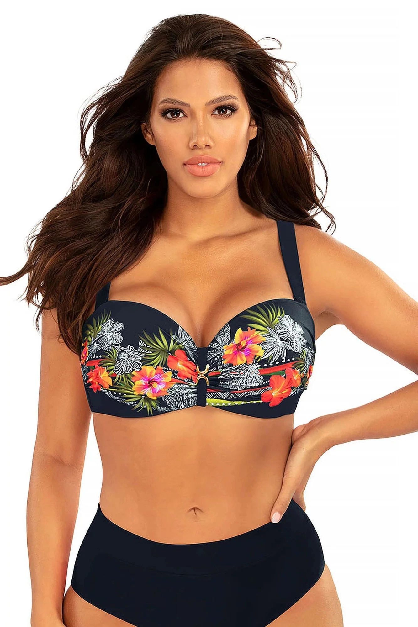 Damski dwuczęściowy kostium kąpielowy 780BL3 3 Bali3 Self - strój kąpielowy wykonany z wygodnego, elastycznego i szybkoschnącego materiału - wzmocnione miseczki z fiszbinami - góra ozdobiona kwiatowym wzorem - regulowane i odpinane ramiączka - klasyczne pełniejsze figi - kolekcja 2023