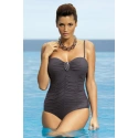 Elegantní a velmi ženské jednodílné plavky zvýrazněné opravdu krásnými barvami. Perfektně profilované, s mnoha stehy na předním díle, které vytvářejí mírný záhyb v látce, což umožňuje pěkně zakrýt bříško. Zdobená nápadnou broží. Plavky mají boční podšívku a vyztužené košíčky umístěné uvnitř modelu. Jsou vycpané jemnou čtyřmilimetrovou pěnou, zvedají prsa, udržují jejich váhu a dokonale je tvarují. Součástí balení jsou push-up košíčky od velikosti S do XXXL, které umožňují opticky zvětšit prsa, takže silueta je mimořádně smyslná. Ramenní popruhy jsou tenké, pružné (elastické pásky), s nastavitelnou délkou a zcela odnímatelné. Vzadu zapínání na přezku.