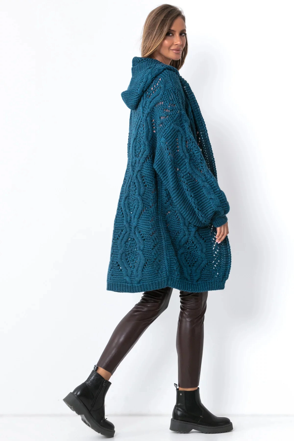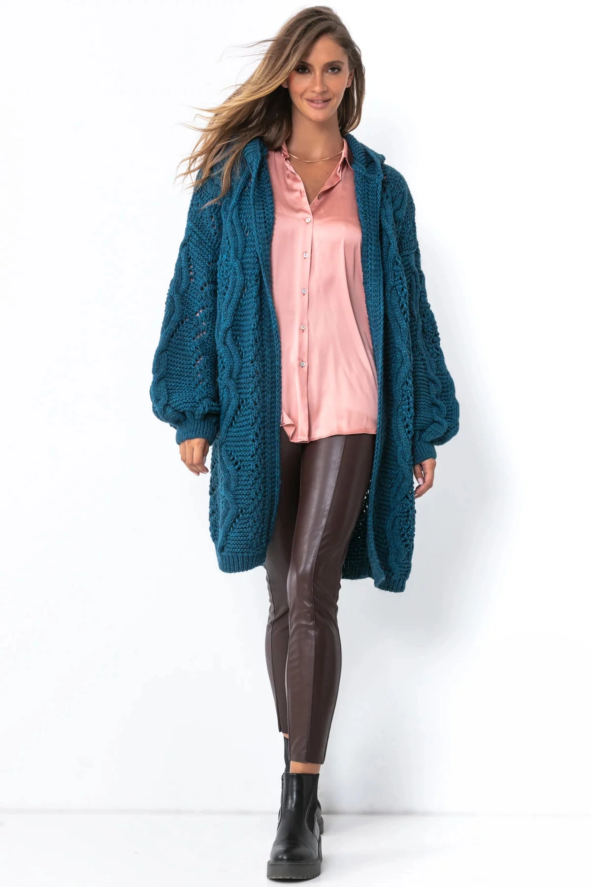 Szukasz pomysłu na modny strój na lato, gdy pogoda jest raczej jesienna? Czy długie, ciekawie wykończone swetry zajmują szczególne miejsce w Twojej garderobie?Spójrz na nasz sweter z kapturem z długim rękawem i pięknym ażurowym splotem. Jest to wygodny sweter, który ładnie układa się na ciele. Ten sweter pasuje do sukienek maxi i letnich spodni. Jesienią i zimą noś go na bluzki z długim rękawem i golfy. Sweter posiada kaptur, który nadaje mu sportowego charakteru. Dlatego świetnie pasuje również do dżinsów i dopasowanych spodni. Twórz wyjątkowe zestawy z trampkami, oksfordami, botkami i botkami za kolano. Długi i wygodny kardigan w jednym z pięciu modnych odcieni to niezbędny element jesienno-zimowej garderoby.