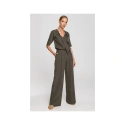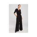 Spodnie garniturowe na specjalne okazje z rękawami do łokcia, kopertową górą, rozcięciami i kieszeniami. Szeroka nogawka. Zapięcie na kryty zamek błyskawiczny.