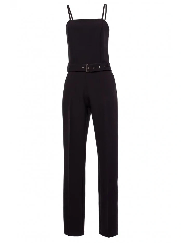 - 95% poliester - 5% elastan Oryginalna i nowoczesna. Ten jednoczęściowy kombinezon ma rozkloszowane proste nogawki, obcisły top z cienkim paskiem i szeroki pasek z klamrą, który ładnie otula talię. SZCZEGÓŁY PRODUKTU: tkany materiał jednoczęściowy kombinezon na ramiączkach kwadratowy dekolt wąskie rozkloszowane nogawki boczne kieszenie ukryty zamek błyskawiczny szlufki z tyłu pasek z klamrą Modelka ma 173 cm wzrostu i nosi rozmiar S
