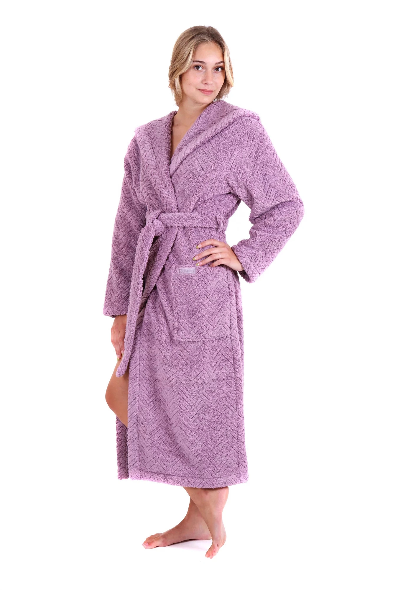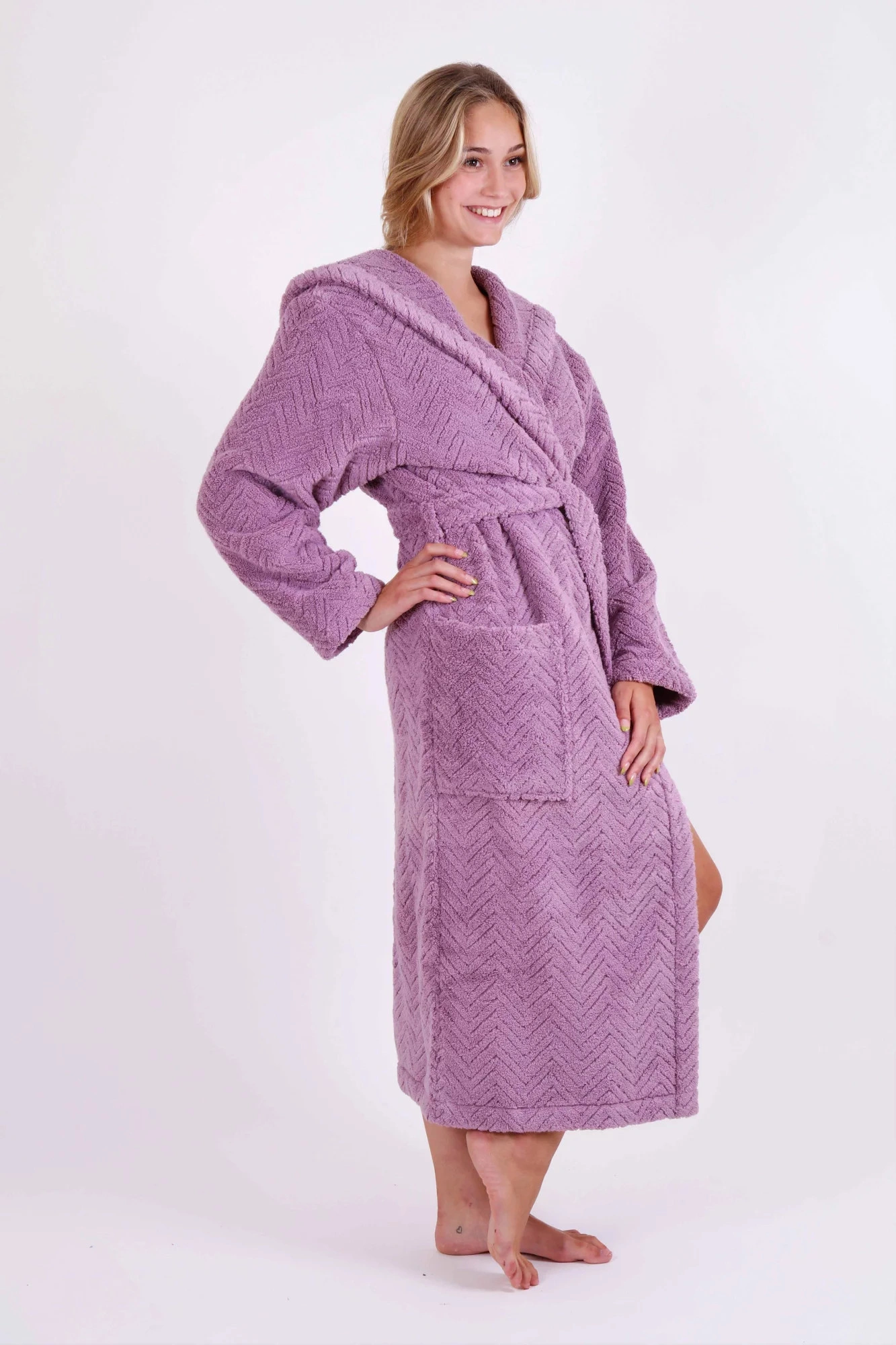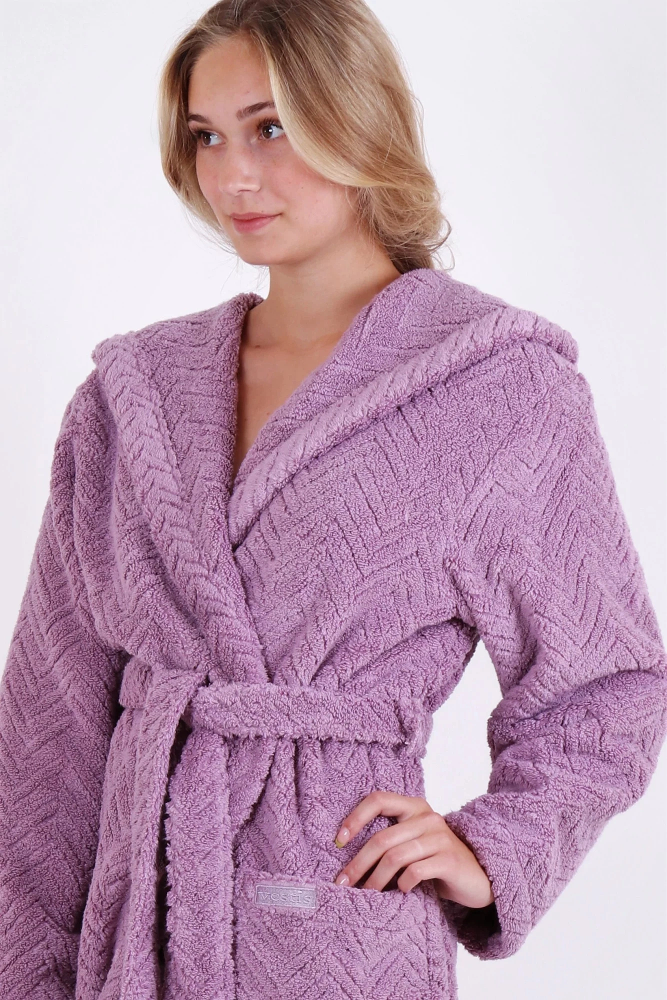 Delikatny pastelowy kolor w odcieniu jasnego bzu idealnie pasuje do stylu Hygge. Zrelaksuj się i odpręż w szlafroku Athena w tym spokojnym, ciepłym kolorze.
