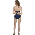 Damski kostium kąpielowy z wiązaniem na plecach i odpinanymi ramiączkami.